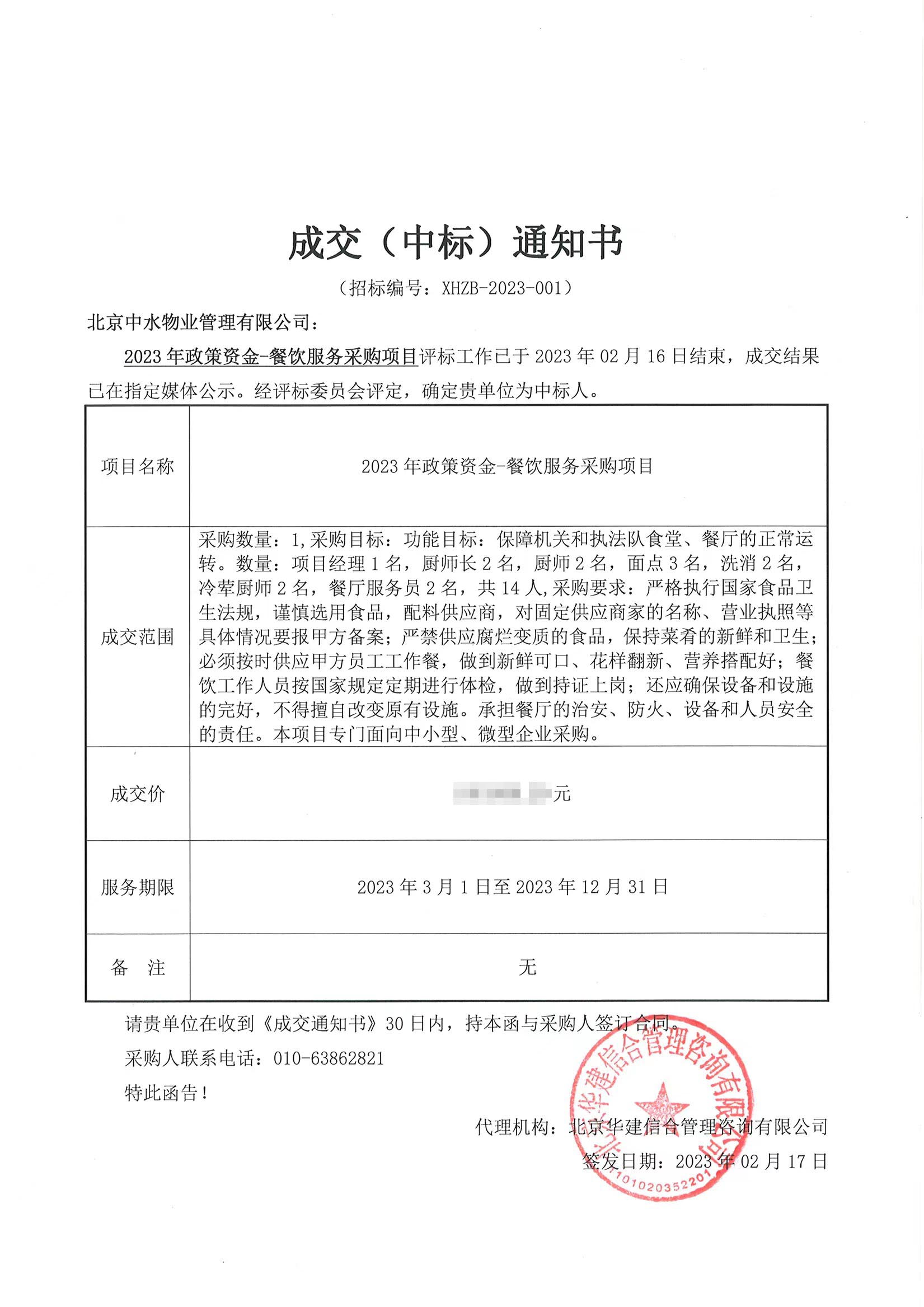 中水物业成功中标北京市丰台区人民政府六里桥街道办事处餐饮服务项目