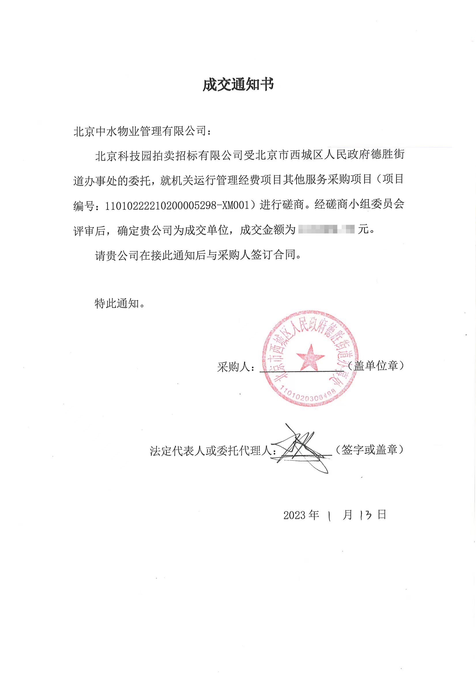 中水物业成功中标北京市西城区人民政府德胜街道办事处餐饮服务项目
