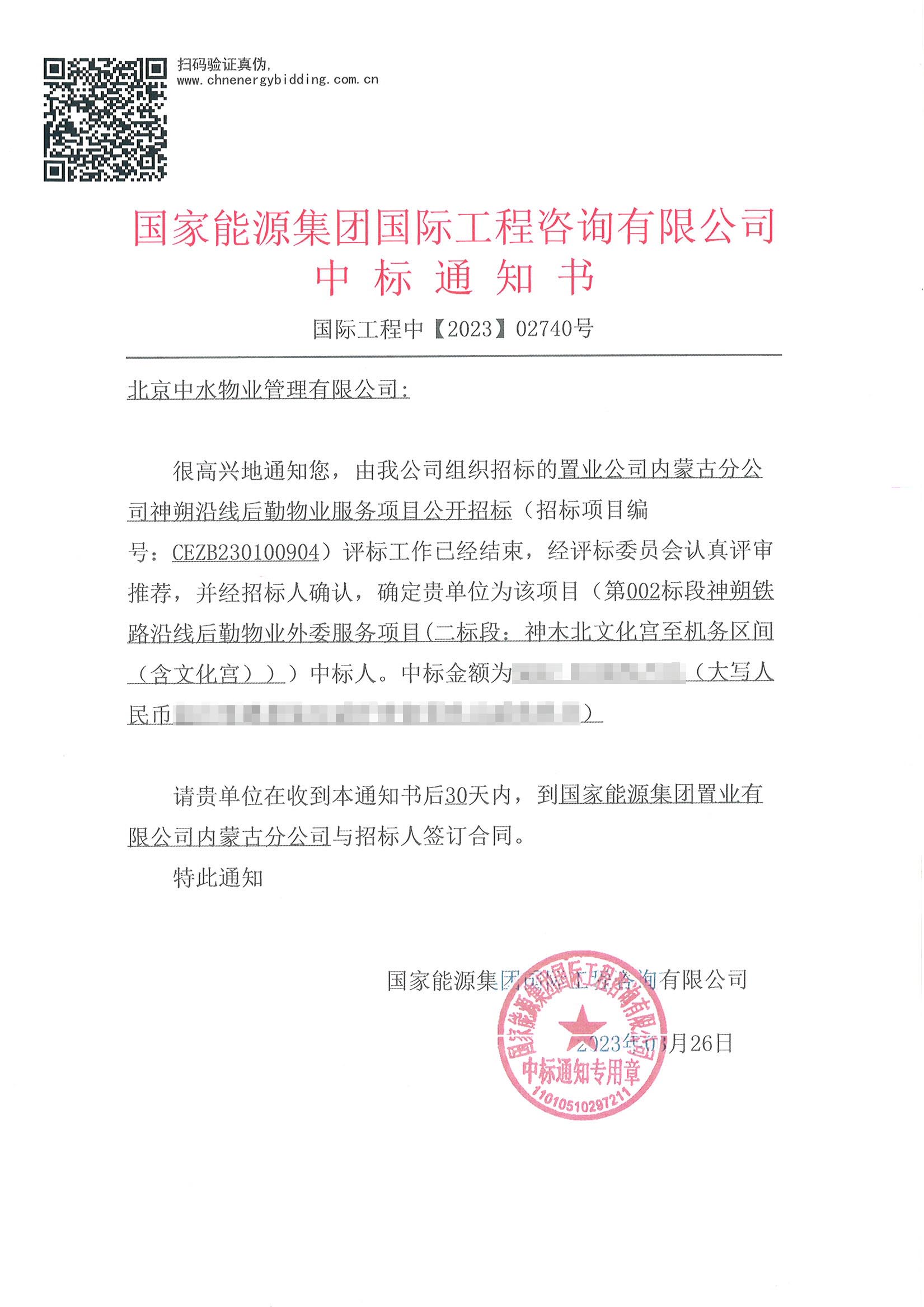 中水物业成功中标国家能源集团神朔铁路沿线后勤物业服务项目
