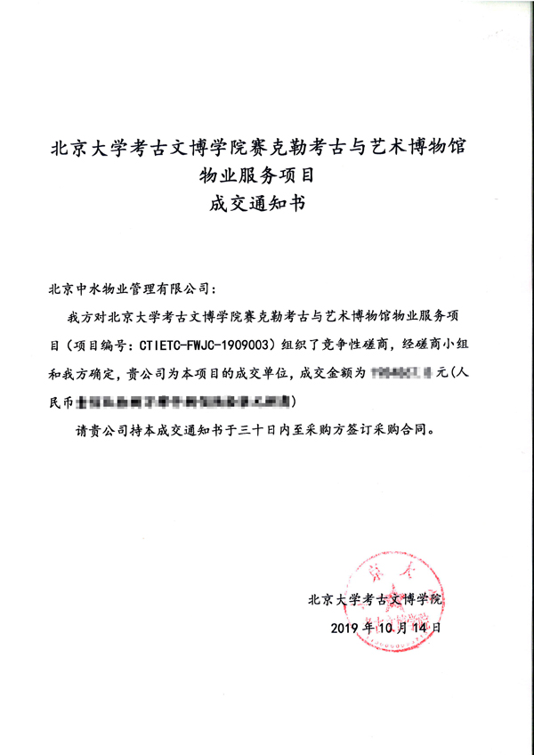 北京大学考古文博学院赛克勒考古与艺术博物馆物业服务项目 成功中标