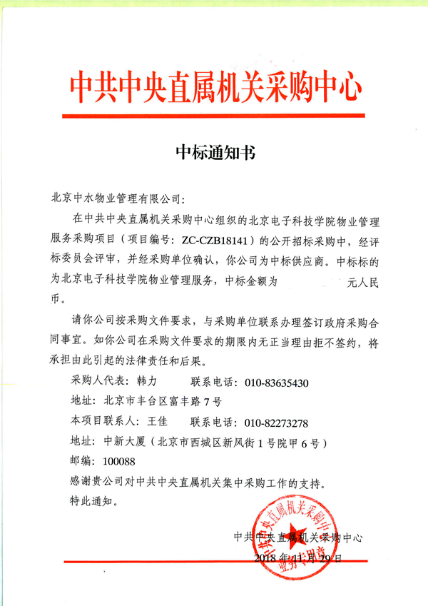 北京电子科技学院物业管理服务采购项目成功中标