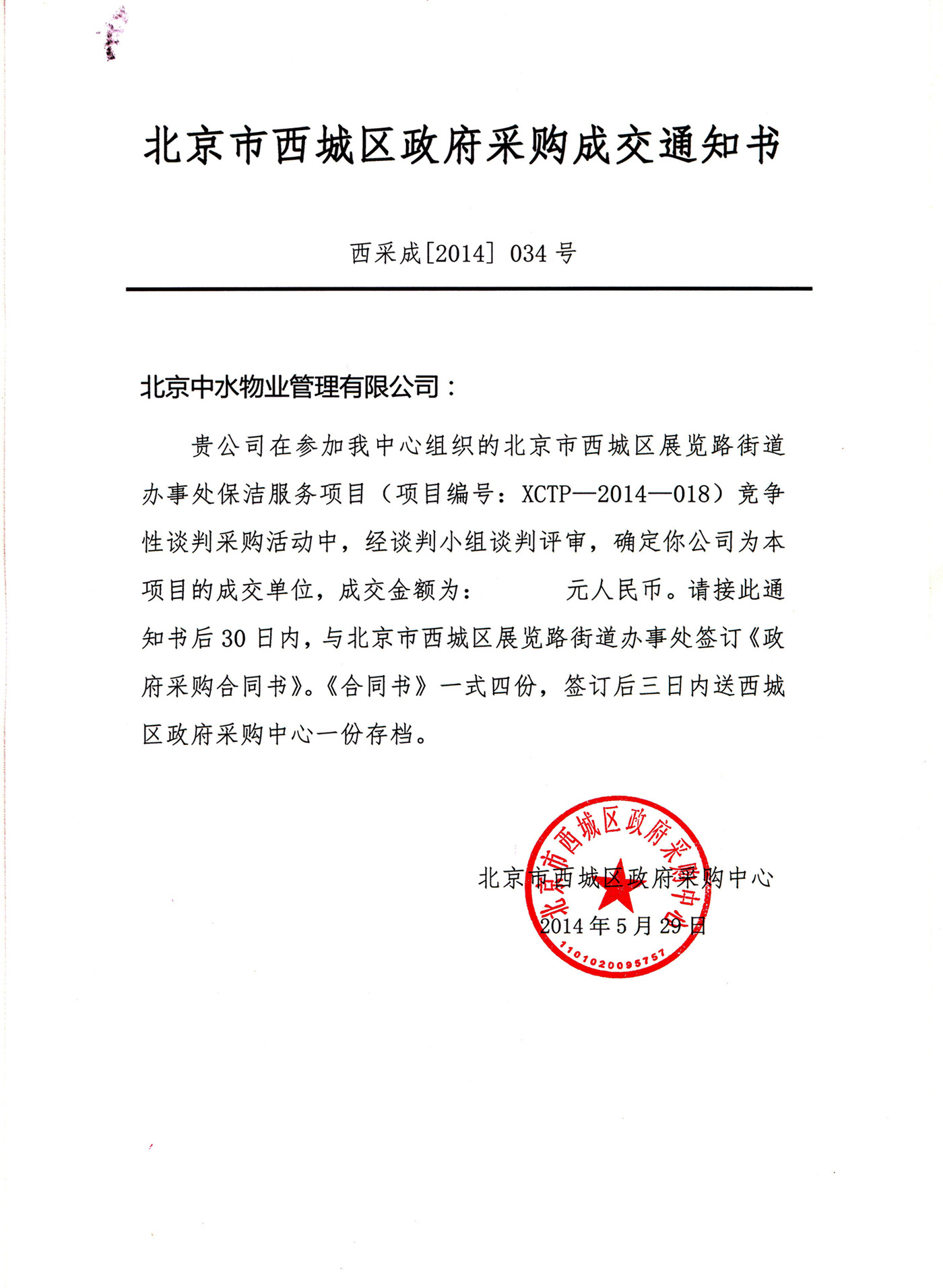北京市西城区展览路街道办事处保洁服务项目成功中标